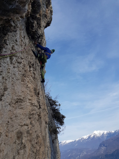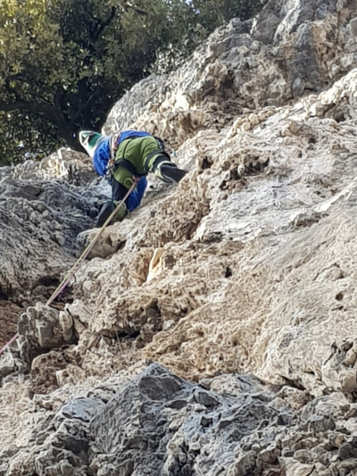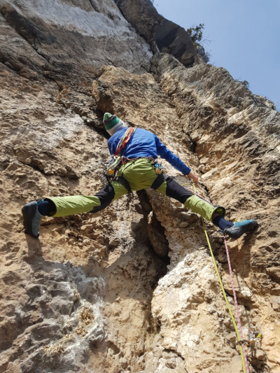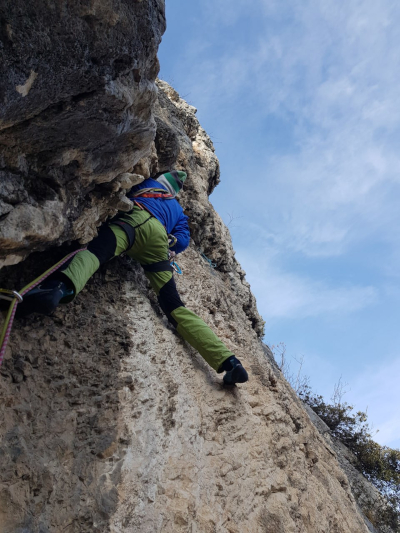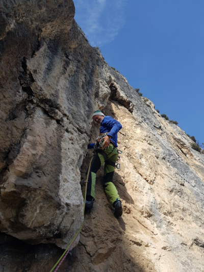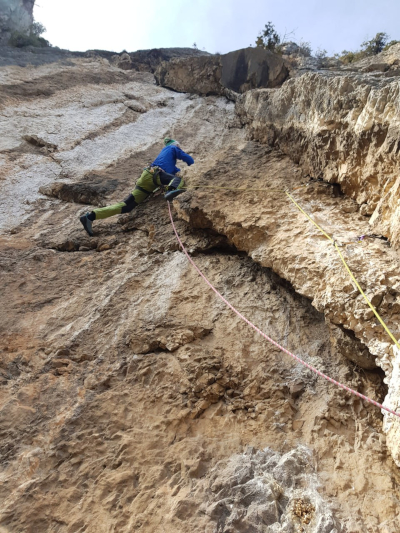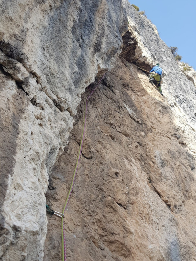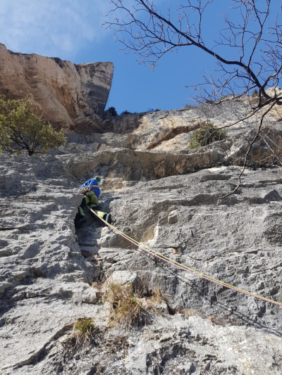 Nel 2026 abbiamo attrezzato le soste con fix ad anello e ripulito dall'erba buona parte della via.